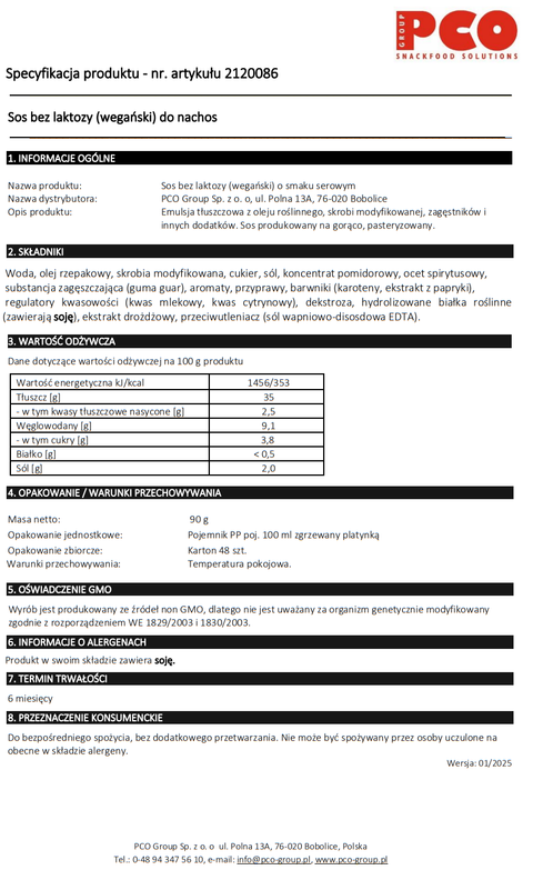 Pełen smaku, gładki i kremowy – stworzony z myślą o tych, którzy chcą cieszyć się pysznymi przekąskami bez laktozy. Doskonale pasuje do chrupiących nachos, tacos czy ulubionych dań na ciepło. Idealny na spotkania ze znajomymi, imprezy lub domowe seanse filmowe.