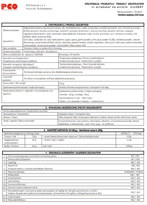 Nachosy  CHILI-LIME - worek 750 g