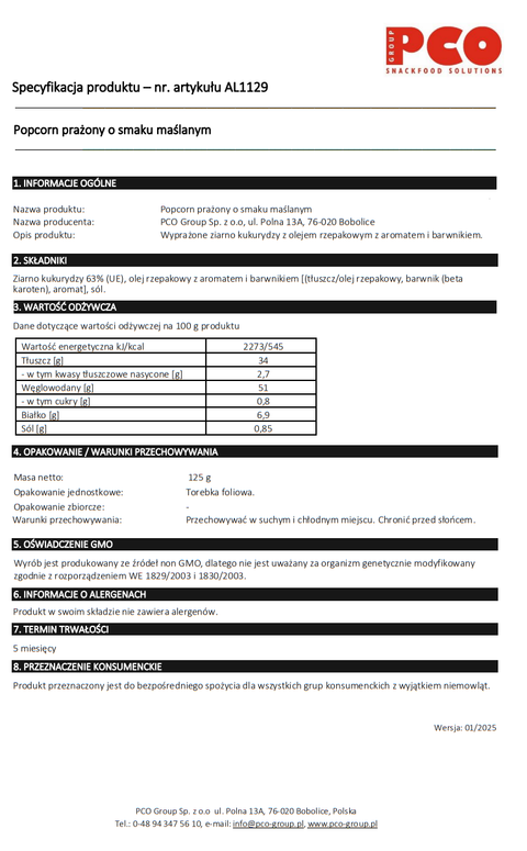 Nie zwlekaj! Zamów nasz popcorn maślany, prażony tradycyjnie, przygotowany na oleju rzepakowym i pozwól swoim kubkom smakowym na prawdziwą ucztę. Przygotuj się na smakową podróż, która dostarczy Ci radość i satysfakcję. Kup teraz i delektuj się wyjątkowym popcornem, który spełni Twoje oczekiwania!