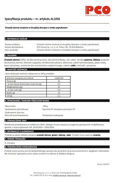 Nie można też zapomnieć o praktycznym opakowaniu, które łatwo zabrać ze sobą wszędzie, gdzie tylko chcesz. Zabierz ze sobą orzeszki ziemne paprykowe na spacer, na spotkanie z przyjaciółmi, czy do biura – zawsze będą doskonałym wyborem!