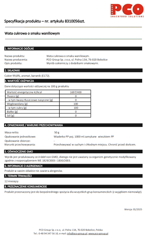 Wata cukrowa o smaku waniliowym - wiaderko 50 g / 1L